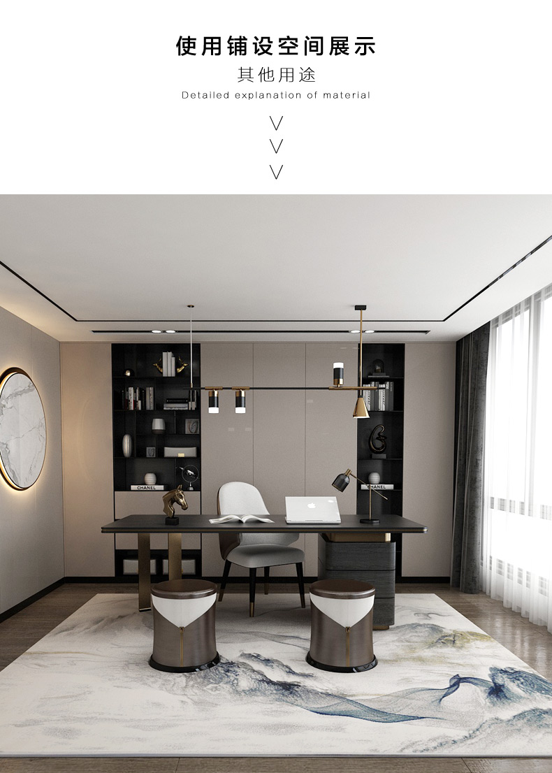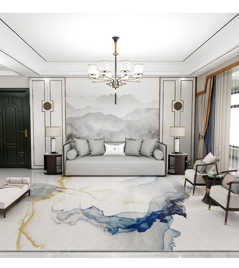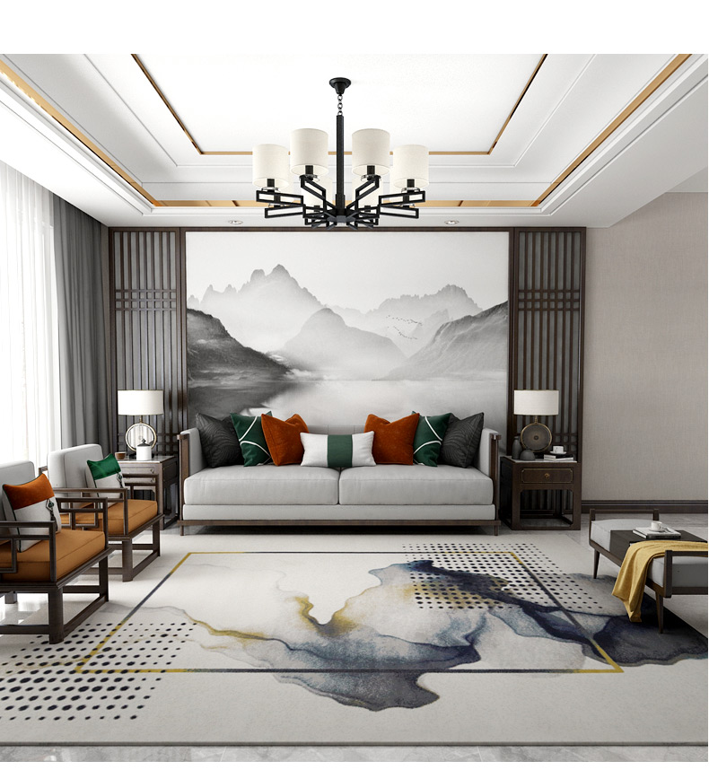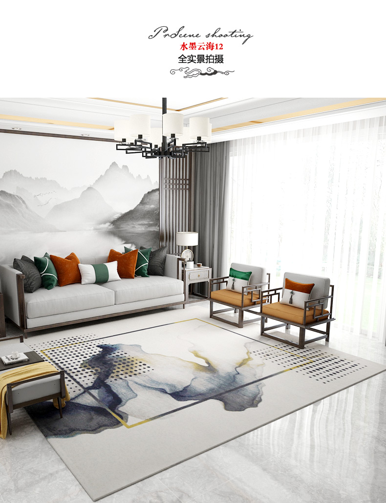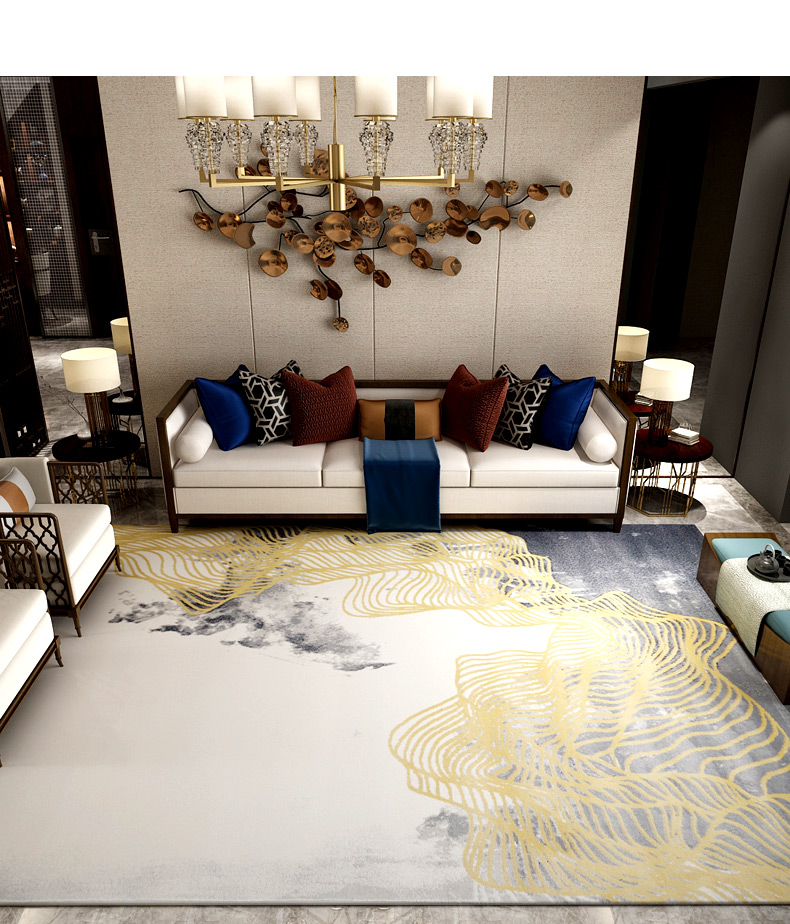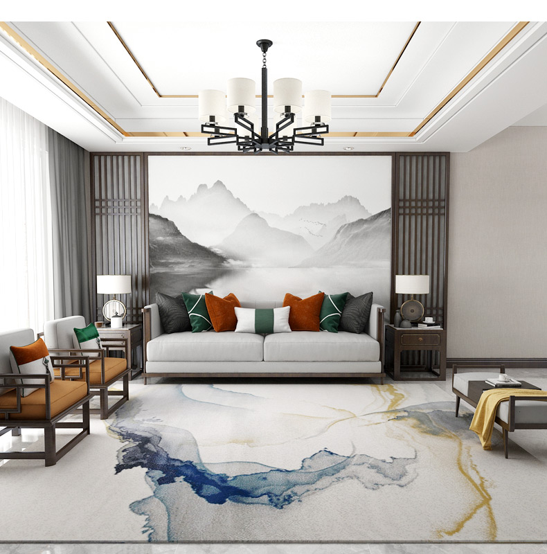 中國地毯花紋主要常用樣式有團(tuán)花紋樣、卷草紋樣、云紋樣?;匦图y樣、荷花、梅蘭竹菊紋樣等。